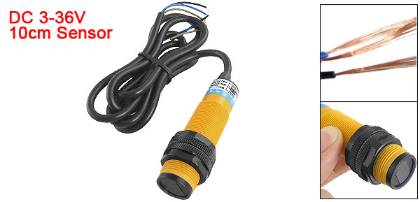 Product Name Photoelectric Switch Model E3F-DS10C4 Sending Light Infrared Rays Type DC 3 Wire, NPN, NO Diffuse Reflection Type Voltage DC 3-36V Output Current 300mA Detection Distance 10cm / 3.94" Threaded Diameter 1.8cm / 0.708'' Overall Size 2.3 x 6.9cm / 0.91'' x 2.72'' (Max.Diameter*L)