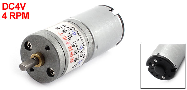 Main Color Silver Tone Brand DMiotech Net Weight 96g Rated Voltage DC4V Country of Manufacture CHINA Package Content 1 x Gear Box Motor Shaft Size 4 x 10mm / 0.16" x 0.39"(D*L) Material Metal, Electronic Parts Rated Speed 4 RPM Motor Body Size 60 x 25mm / 2.4" x 1.0"(L*D) - Reviews