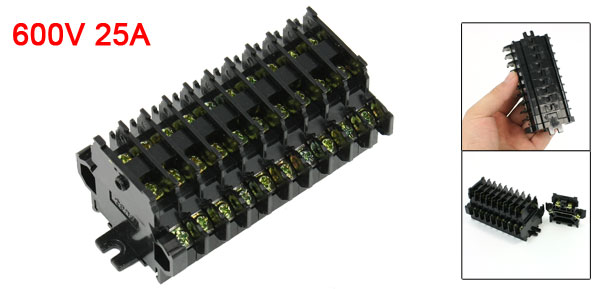 Product Name Screw Terminal Strip Main Material Metal, Plastic Rated Value 600V, 25A Position 10 Size (approx.) 11 x 5.5 x 4.5cm / 4.3" x2.2" x 1.7" (L*W*T) Color Black, Gold Tone Net Weight 143g Package Content 1 x Terminal Strip - Reviews