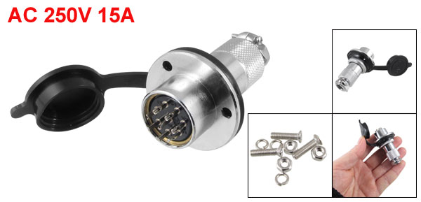 DF20B-8 8 Pin AC 250V 15A Aviation Circular Connector w Black Rubber Cap