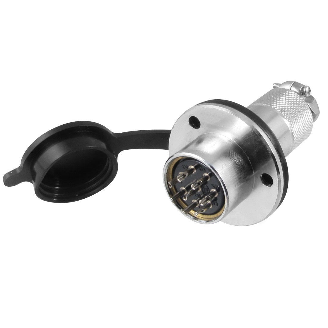 Product Name Circular Connector Model DF20B-8 External Material Metal, Rubber Pin Quantity 8 Working Voltage AC 250V Withstand Voltage AC 1000V Current 15A Insulation Resistance 1000M Ohm Head Diameter 19 mm / 0.75" Hole Diameter 7.2 mm / 0.28" Overall Size 5.5 x 3.3 cm / 2.2" x 1.3" (L*Max.D) Color Silver Tone, Black Net Weight 53g Package Content 1 x Circular Connector