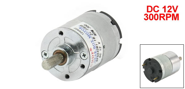 Product Name DC Geared Motor Model DFGA32RI-16.2i Rated Voltage DC 12V Output Speed 300RPM Output Shaft Size 6 x 15mm / 0.236" x 0.59" (D*H) Body Size 32 x 42mm/ 1.26" x 1.65"(D*H) Material Metal, Electronic Parts Color Silver Tone Weight 112g Package Content 1 x DC Geared Motor - Reviews