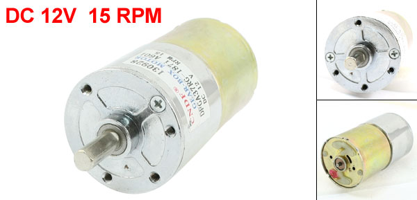 Product Name DC Geared Motor Model DFGA37RG-187i Rated Voltage DC 12V Output Speed 15 RPM Shaft Diameter 6mm/ 0.236" Gearbox Part Diameter 37mm/ 1.456" Motor Part Diameter 35.5mm/ 1.397" Total Length(Approx.) 83mm/ 3.3" Material Metal, Electronic Parts Color Silver Tone Weight 210g Package Content 1 x DC Geared Motor - Reviews