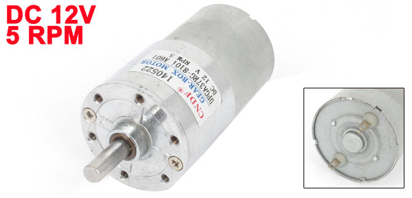Product Name DC Geared Motor Model DFGA37RG-80i Rated Voltage DC 12V Output Speed 5 RPM Shaft Diameter 6mm/ 0.236" Gearbox Part Diameter 37mm/ 1.456" Motor Part Diameter 35.5mm/ 1.397" Total Length(Approx.) 883mm/ 3.5" Material Metal, Electronic Parts Color Silver Tone Weight 194g Package Content 1 x DC Geared Motor - Reviews