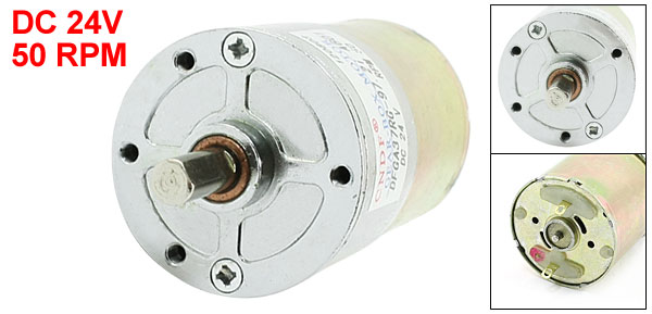 Product Name DC Geared Motor Model DFGA37RG-97.2i Rated Voltage DC 24V Output Speed 50 RPM Shaft Diameter 6mm/ 0.236" Gearbox Part Diameter 37mm/ 1.456" Motor Part Diameter 35.5mm/ 1.397" Total Length(Approx.) 80mm/ 3.15" Material Metal, Electronic Parts Color Silver Tone Weight 196g Package Content 1 x DC Geared Motor - Reviews