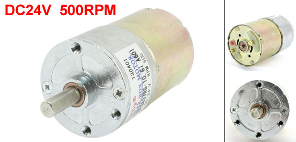 Product Name DC Geared Motor Model DFGB37RG-10.6i Rated Voltage DC 24V Output Speed 500RPM Shaft Diameter 6mm/ 0.236" Gearbox Part Diameter 37mm/ 1.456" Motor Part Diameter 35.5mm/ 1.397" Total Length(Approx.) 77mm/ 3.03" Material Metal, Electronic Parts Color Silver Tone Weight 190g Package Content 1 x DC Geared Motor - Reviews