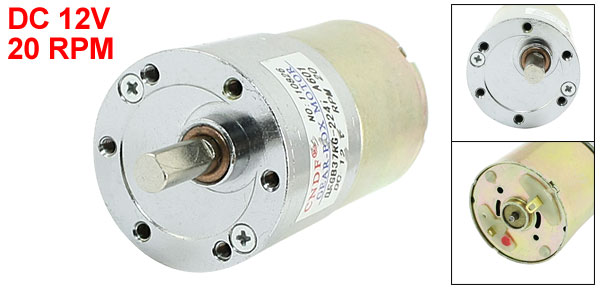 Product Name DC Geared Motor Model DFGB37RG-224i Rated Voltage DC 12V Output Speed 20 RPM Shaft Diameter 6mm/ 0.236" Gearbox Part Diameter 37mm/ 1.456" Motor Part Diameter 35.5mm/ 1.397" Total Length(Approx.) 83mm/ 3.3" Material Metal, Electronic Parts Color Silver Tone Weight 210g Package Content 1 x DC Geared Motor - Reviews