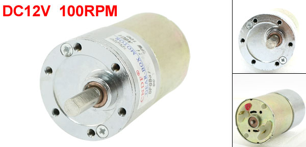 Product Name DC Geared Motor Model DFGB37RG-41 Rated Voltage DC 12V Output Speed 100RPM Shaft Diameter 6mm/ 0.236" Gearbox Part Diameter 37mm/ 1.456" Motor Part Diameter 35.5mm/ 1.397" Total Length(Approx.) 77mm/ 3.03" Material Metal, Electronic Parts Color Silver Tone Weight 198g Package Content 1 x DC Geared Motor - Reviews