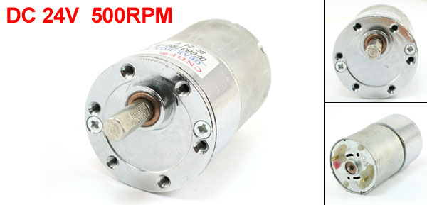 Product Name DC Geared Motor Model DFGB37RG-8.1i Rated Voltage DC 24V Output Speed 500RPM Shaft Diameter 6mm/ 0.236" Gearbox Part Diameter 37mm/ 1.456" Motor Part Diameter 35.5mm/ 1.397" Total Length(Approx.) 77mm/ 3.03" Material Metal, Electronic Parts Color Silver Tone Weight 193g Package Content 1 x DC Geared Motor - Reviews