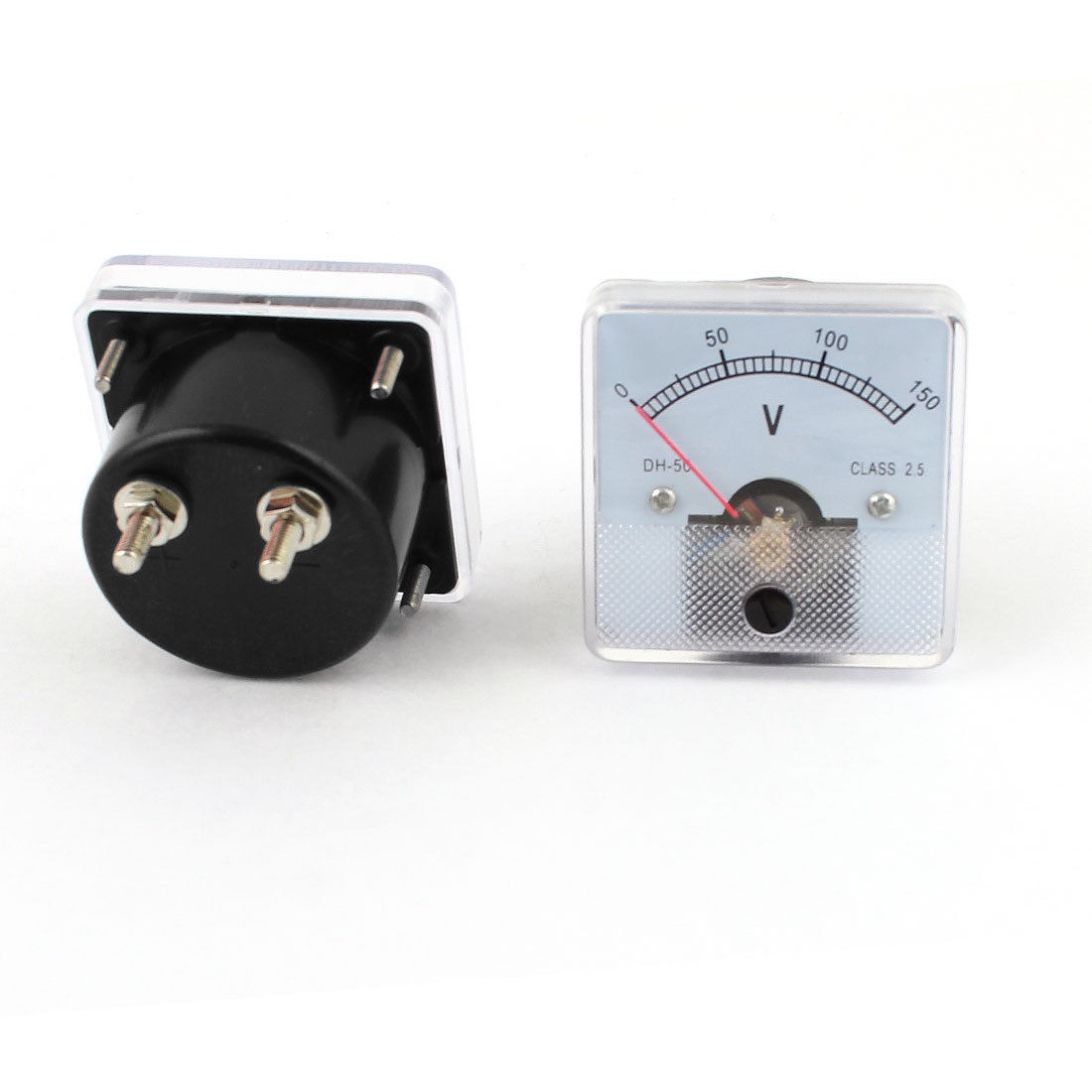 Meter Face Size(Approx) 5 x 5cm/ 2 x 2inches (L*W) Net Weight 127g Country of Manufacture CHINA Model DH-50 Package Content 2 x Analog Voltmeter Measuring Voltmeter Range DC 0-150V Material Plastic, Metal Accuracy Class 2.5 Thread Size 0.4 x 0.8cm / 0.16 x 0.31 inches (D*L)  - Reviews