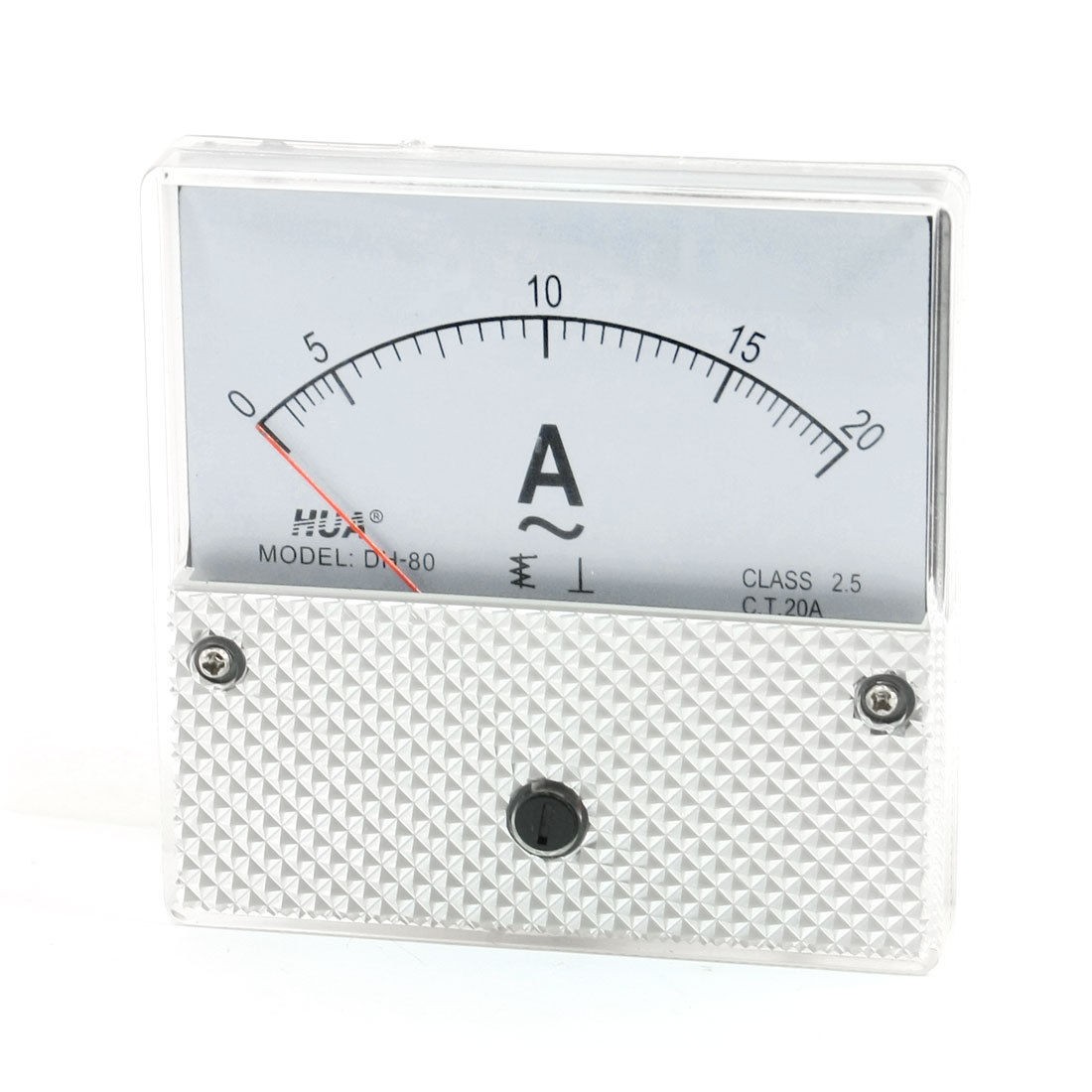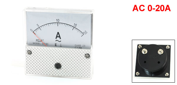 Product Name Analog Ammeter Model DH-80 Measuring Current Range AC 0-20A Accuracy Class 2.5 Total Size 8.1 x 8.1 x 4.5cm/3.2" x 3.2" x 1.8"(L*W*T) Thread Dia. 5mm/ 0.2"