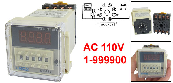 Product Name Digital Counter Relay Model DH48J Count Range 1-999900 Power Source AC 110V, 50/60Hz Contact AC 250V 5A ( Resistive Load) Count Speed <300cps Digit Display 4 Mounting Type Panel Mount Marerial Plastic, Electrionic Parts Color Gray Size 11 x 5.8 x 5cm/4.3'' x 2.2'' x 2'' (L*W*H) Net Weight 207g Package Content 1 x Digital Counter Relay w Base