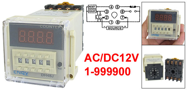 DH48J 1-999900 Count Up Digital Counter Relay w Base AC/DC 12V 50/60Hz