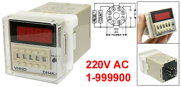 DH48J 220VAC 1-999900 Count Range 8 Terminal Digitals Counter Relay