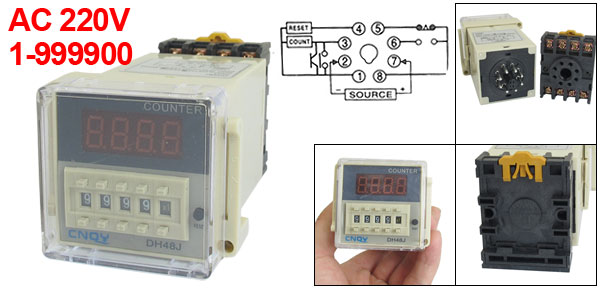 DH48J AC 220V 50/60Hz 1-999900 Count Up Digital Counter Relay w Base