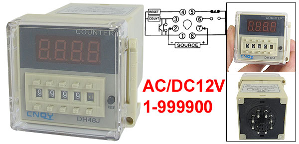 DH48J AC/DC 12V 50/60Hz 1-999900 8 Pin Terminals Digital Counter Relay