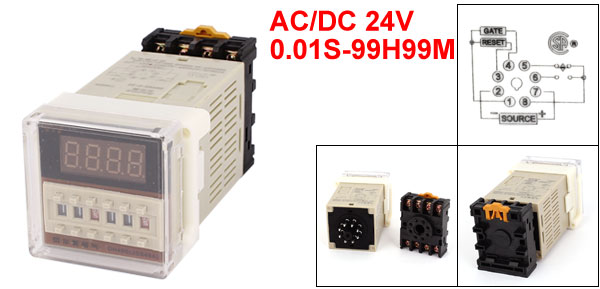 DH48S-1Z AC/DC 24V 8Pin LCD Digital Timer Time Delay Relay 0.01S-99H99M w Socket