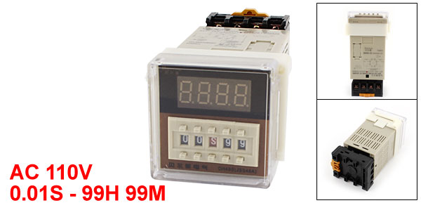 DetailsDH48S-2Z AC 110V 8 Pins Digital Timer Time Delay Relay 0.01S - 99H 99M w Socket  Main Color Clear, Gray, Black, White Brand DMiotech Country of Manufacture CHINA Terminals 8 Pins Model DH48S-2Z Material Plastic, Metal Total Size 11 x 5.5 x 5cm/4.3" x 2.2" x 2"(L*W*H) Time Range 0.01S - 99H 99M DIN Rail Mount 35mm Net Weight 233g Rated Voltage AC 110V Package Content 1 x Timer Relay w Socket Contact Resistive Load AC 250V 3A