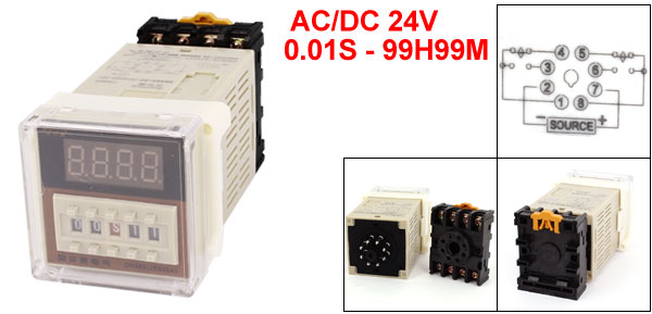 Main Color Clear, Gray, Black Brand DMiotech Country of Manufacture CHINA Terminals 8 Model DH48S-2Z Material Plastic, Metal Total Size 11 x 6 x 5cm / 4.3" x 2.4" x 2" (L*W*H) Time Range 0.01S - 99H99M DIN Rail Mount 35mm Panel Size 46 x 46mm/1.8" x 1.8"(L*W) Net Weight 170g Rated Voltage AC/DC 24V Package Content 1 x Timer Relay w Socket Contact Resistive Load AC 250V 3A - Reviews