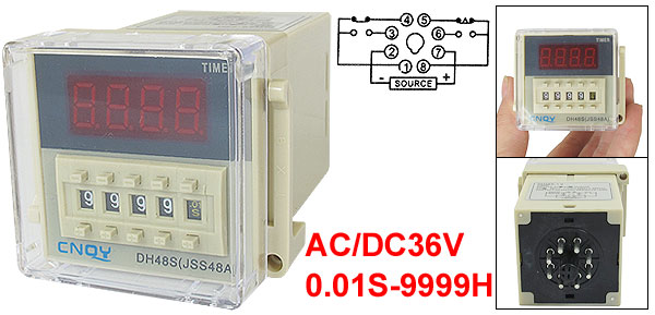 DH48S-2ZH LCD Display Time Timer Delay Relay 8-Pin DPDT 0.01S-9999H AC/DC36V