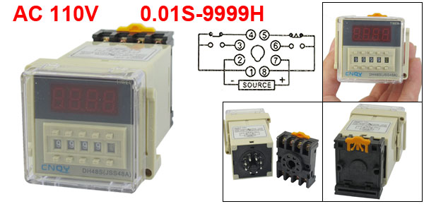 Product Name Digital Time Relay Type DH48S-2ZH Contact Type DPDT Rated Voltage AC 110V Frequency 50/60 Hz Contact AC 250V 5A Resistive Load Time Range 0.01S-9999H Mount Rail Type 35mm DIN Rail Base Mount Hole Size 4 mm/0.16" Panel Size 50 x 50mm/2" x 2"(L*W) Mounted Size 45 x 45 x 94mm/1.8" x 1.8" x 3.7"(L*W*Depth) Total Size 50 x 60 x 119mm/2" x 2.4" x 4.7"(L*W*H) Color Beige, Black Net Weight 211g Package Content 1 x Digital Time Relay w Socket - Reviews