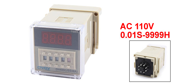 DH48S AC 110V DPDT 8 Pin 0.01S-9999H Range Delay Time Timer Relay