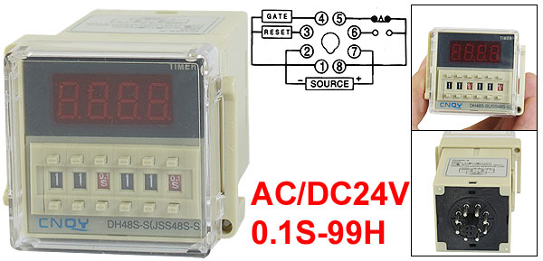 Product Name Digital Time Relay Type DH48S-S Contact Type SPST Rated Voltage AC/DC24V Frequency 50/60 Hz Contact AC 250V 5A Resistive Load Time Range 0.1S-99H Panel Size 50 x 50mm/2" x 2"(L*W) Mounted Size 45 x 45 x 72mm/1.8" x 1.8" x 2.8"(L*W*Depth) Total Size 50 x 60 x 88mm/2" x 2.4" x 3.5"(L*W*H) Color Beige Net Weight 97g Package Content 1 x Digital Time Relay - Reviews
