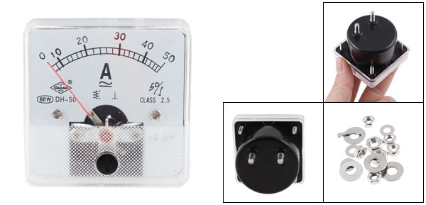 Product Name Analog Ammeter Model DH50 Measuring Range AC/ DC0-50A Accuracy Class 2.5 Meter Face Size(Approx) 5 x 5 x 1cm/1.97" x 1.97" x 0.39"(L*W*T) Thread Size 0.28 x 0.75cm / 0.11" x 0.30" (D*L)