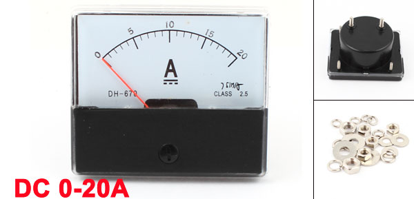 Main Color Black, White, Clear Brand DMiotech Net Weight 62g Country of Manufacture CHINA Model DH670 Package Content 1 x Analog Ammeter, Some Install Parts Screw Dia 2.8mm/ 0.11", 3.8mm/ 0.15" Overall Depth(Screw not Included) 35mm/ 1.4" Scale Range DC 0-20A Material Plastic, Metal Accuracy Class 2.5 Meter Face Size 71 x 61 x 12mm/ 2.8" x 2.4" x 0.47" (L*W*T) - Reviews