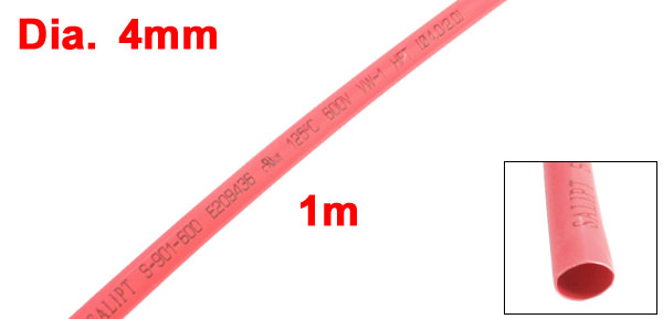 Dia Ratio 1/2 Red Heat Shrink Tube Pipe 4mm 3.3ft 1m 600V 125C