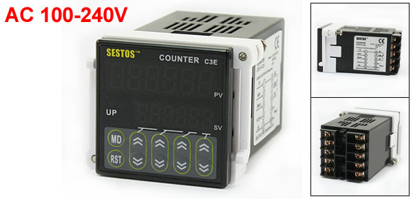 Product Name Digital Counter Model C3E-R-220 Working voltage AC 100-240V 5VA Contact Output AC 250V 3A Start Time >=100ms Count Range 0.001-99.999 Max Counting Speed 100Hz, 5KHz, 10KHz Environment Temperature -10-55°C Relative Humidity 35-85% Terminal Number 10 Dimension 47 x 47 x 90mm/ 1.8" x 1.8" x 3.5" (L*W*T) Material (External) Plastic Main Color Black Weight 372g Package Content 1 x Digital Counter - Reviews