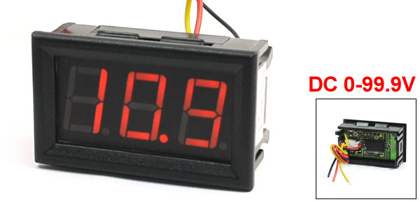 Digital Red LED Display 3 Wires 3 Digits DC 0-99.9V Voltmeter