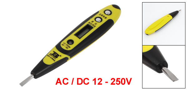Net Weight 41g Country of Manufacture CHINA Package Content 1 x Digital Voltage Tester Total Size (Approx.) 14 x 2.5 x 1.3cm / 5.5" x 1" x 0.51" (L*W*T) Voltage AC / DC 12 - 250V Material Plastic, Metal Slotted Screwdriver Tip Size 16 x 3.5mm / 0.63" x 0.14"(W*L) - Reviews