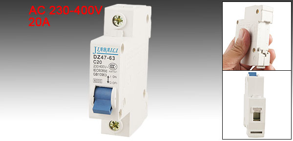 Product Name Circuit Breaker Model DZ47-63 C20 Rated Current 20A Rated Voltage AC 230-400V Rated Circuit Breaking Capacity 6000A Mount Type 35mm DIN Rail Total Size (Approx.) 77 x 18 x 71mm/ 3" x 0.7" x 2.8" (L*W*H) Number of Poles 1 Material Plastic, Electric Components Color As Picture Shown Weight 77g Package Content 1 x Circuit Breaker - Reviews