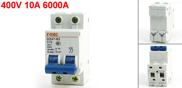 Product Name Circuit Breaker Model DZ47-63 C10 Rated Voltage 400V Rated Current 10A Rated Circuit Breaking Capacity 6000A Frequency 50Hz Mounting Type 35mm DIN Rail Mount Total Size (Approx.) 8 x 7.5 x 3.5cm/3.15" x 3" x 1.4"(L * W * H) Number of Poles 2 Material Plastic, Electric Components Color White, Blue Weight 187g Package Content 1 x Circuit Breaker - Reviews