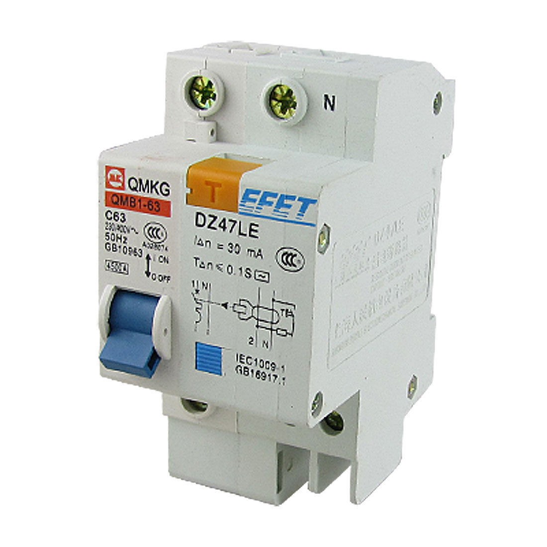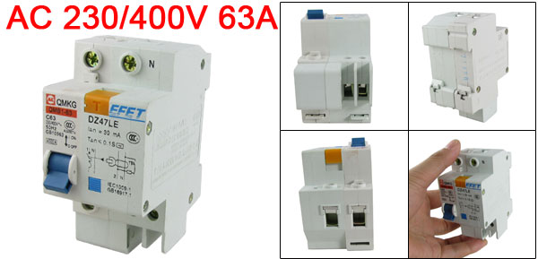 Product Name Earth Leakage Circuit Breaker Model DZ47LE C63 Rated Voltage AC 230/400V Rated Current 63A Number of Poles 1 Neutral +N Rated Breaking Capacity 4500A Rated Residual Operating Current 0.03A (30mA) Rated Residual Operating Time < 0.1S Mount DIN Rail Mount Overall Size 93 x 45 x 70mm/ 3.7" x 2.8" x 2.8" (L*W*H) Material Plastic, Electric Components Color As Picture Shown Weight 207g Package Content 1 x Earth Leakage Circuit Breaker - Reviews