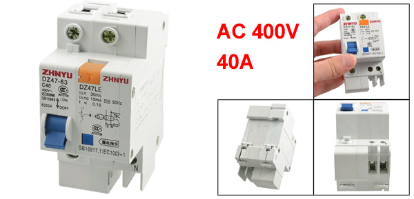 Product Name Earth Leakage Circuit Breaker Model DZ47LE Rated Voltage AC 400V 50Hz Rated Current 40A Number of Poles 1 Neutral +N Rated Breaking Capacity 6000A Rated Residual Operating Current 0.03A (30mA) Rated Residual Operating Time < 0.1S Mount Type DIN Rail Overall Size 9.5 x 4.5 x 7.2cm/ 3.7" x 1.8" x 2.8" (L*W*H)