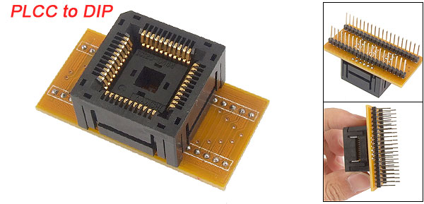 Product Name Programmer Socket Adapter Type PLCC to DIP Material Plastic, Metal DIP Pin Pitch: 2.54mm/0.1'' Number: 40 PLCC Pin Pitch: 1.27mm/0.05'' Number: 44 Total Size 52 x 27 x 32mm/2'' x 1.1'' x 1.3'' (L*W*H) Color Black, Orange Weight 19g Package Content 1 x Programmer Socket Adapter - Reviews