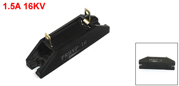 Product Name Rectifier Diode Model PRHVP-16 Forward Current 1.5A Reverse Voltage 16KV Body Dimension 75 x 19 x 18 mm / 3" x 0.75" x 0.71" (L*W*H) Pin Spacing 39mm / 1.5" Color Silver Tone, Black Weight 32g Package Content 1 x Rectifier Diode - Reviews