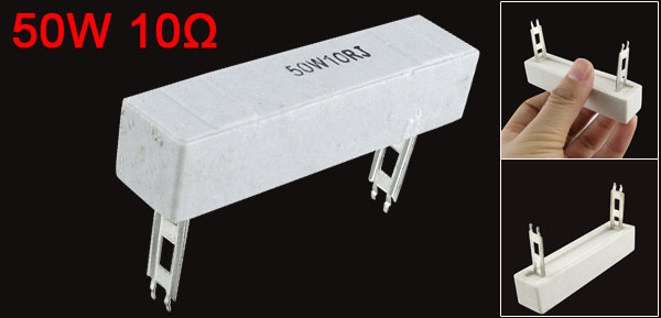 Product Name Cement Resistor Body Material Ceramic, Cement Power 50W Resistance 10Ω Tolerance ±5% Body Size (Approx.) 88 x 19 x 17mm / 3.4" x 0.74" x 0.67" (L * W * H) Pin Size (Approx.) 30 x 10mm / 1.2" x 0.4"(L*W) Color White Weight 65g Package Content 1 x Cement Resistor - Reviews