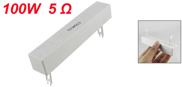 Product Name Cement Resistor Body Material Ceramic, Cement Power 100W Resistance 5Ω Tolerance ±5% Body Size (Approx.) 135 x 25 x 23mm/ 5.3" x 8" x 0.9" (L*W*H) Pin Size (Approx.) 30 x 10mm/ 1.2" x 0.39"(L*W) Pitch Distance 111mm/ 4.4" Color White Weight 165g Package Content 1 x Cement Resistor - Reviews