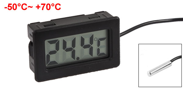 Product Name Digital Thermometer Temperature Range -50°C~ +70°C Precision ±1 °C Power Supply 2 x LR44 Cell Button(Not Included) Size(Approx.) 4.9 x 2.9 x 1.5cm/ 1.9" x 1.1" x 0.6"(L*W*T) Cable Length 202cm / 6.6 Ft Casing Material Plastic Color Black Weight 32g Package Contents 1 × Digital Thermometer - Reviews