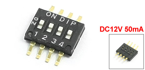 DIY 4 Positions 8Pins 1.27mm Pitch Dip Switch DC12V 50mA