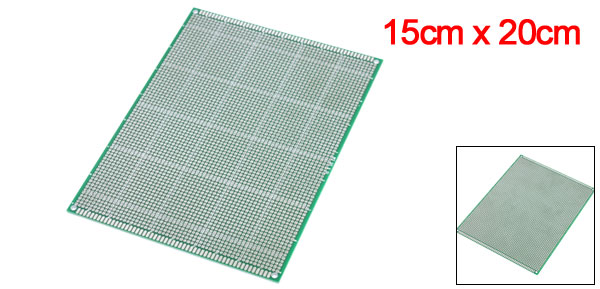 Product Name Universal PCB Board Hole Diameter 1 mm / 0.039" Hole Pitch 2.54mm / 0.1" Board Size 15 x 20 cm / 5.9" x 7.8" (L*W) Thickness 2 mm / 0.078" Material FR-4 Color Silver Tone, Green Weight 85g Package Content 1 x Universal PCB Board - Reviews