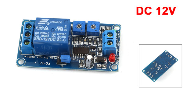 Product Name Cycle Time Delay Relay Module Model SRD-12VDC-SL-C Material Electronic Parts Number of Channels 1 Voltage DC 12V Load 10A, AC 250V/125V, DC 30V/28V Size 57 x 30 x 18mm/ 2.3" x 1.2" x 0.7" (L*W*H) Main Color Blue Weight 18g Package 1 x Cycle Time Delay Relay Module - Reviews