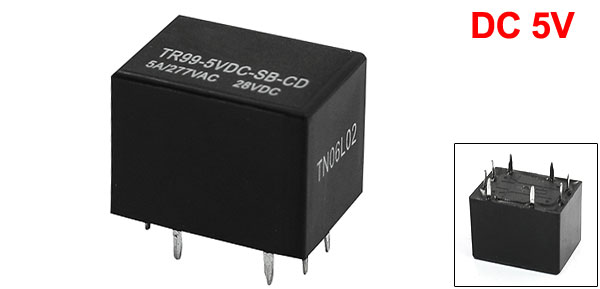 DetailsDIY PCB Board DC 5V Coil Volt 8 Pin General Purpose Power Relay  Product Name Power Relay Model TR99-5VDC-SB-CD Coil Voltage DC 5V Load Capacity 5A 277VAC/28VDC Action Type DPDT, 2NO 2NC Pin Number 8 Size (Approx.) 22 x 16 x 16mm / 0.87" x 0.63" x 0.63“(L*W*T) Material Plastic, Metal Color Black Weight 10g Package Content 1 x Power Relay