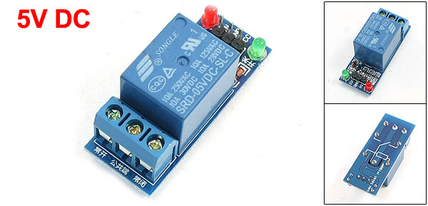 Product Name Relay Module Model SRD-05VDC-SL-C Material Electronic Parts Number of Channels 1 Voltage 5V DC Load 10A, AC 250V/125V, DC 30V/28V Size 43 x 17 x 18mm/ 1.7" x 0.67" x 0.7" (L*W*H) Color Blue Weight 21g Package 1 x Relay Module - Reviews