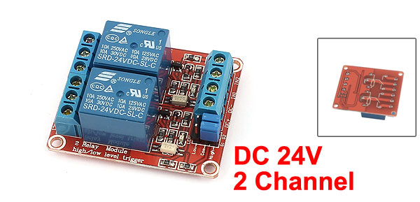 DIY Red 2 Channel High Low Level Trigger Relay Circuit Module DC 24V