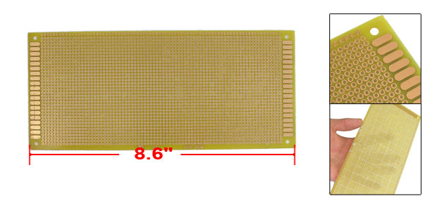 Product Name Universal PCB Board Hole Dia(Approx) 0.1mm / 0.039" Hole Pitch(Approx) 2.54mm / 0.1" Size(Approx) 10 x 22cm / 4" x 8.6"(L*W) Thickness(Approx) 0.115cm / 0.04“ Material FR-4 Color Copper Tone Weight 43g Package Content 1 x Universal PCB Board - Reviews