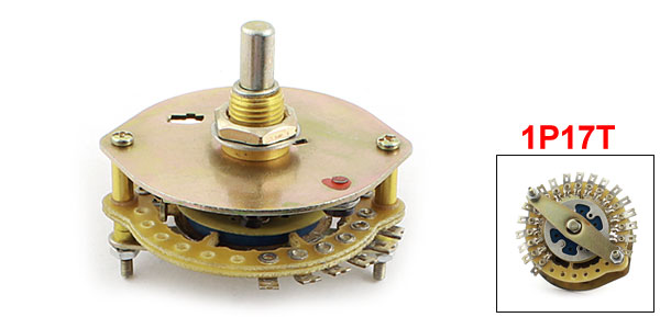 Product Name Rotary Switch Contact Type 1 Pole 17 Position(1P17T), 1 Deck Rotating Shaft Dia 6mm / 0.24" Pin Number 1*18 Thread Dia 10mm/0.4" Dimensions 5.5 x 5cm / 2.2" x 2"(Max.D*H) Material Metal, FR-4 Net Weight 60g Package Content 1 x Rotary Switch - Reviews